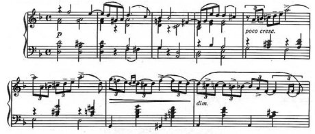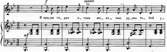 острому, напряженному тяготению к каденционному басу - V, так как образует яркое полутоновое соотношение между IV повышенной и V ступенью лада.