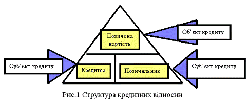 елементом структури кредиту є об'єкт передачі - позичена вартість, яка