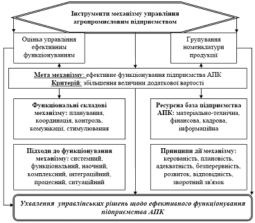 механізму управління агропромисловим підприємством;