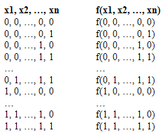 з набором довжини 2n. Наприклад, двомісну функцію, задану таблицею можна