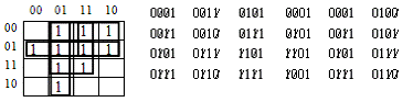 в сусідніх клітинках карти можуть бути замінені однією кон’юнкцією, яка містить