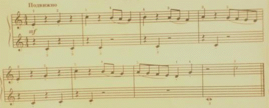 легато. Характер пьесы резко поменяется: это уже не похоже на резвый мячик,
