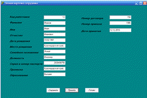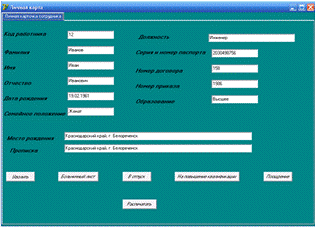 автоматизирующий рабочее место начальника отдела кадров.