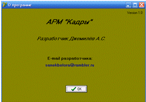 проектировании и разработке программы «Кадры».