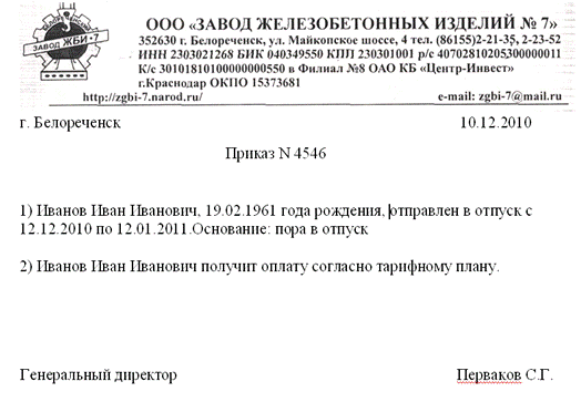 Подбор, расстановка и воспитание кадров; 5.2 Планирование отпусков; 5.3