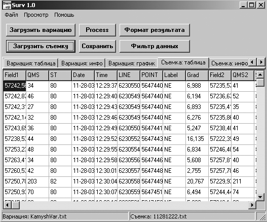 а также введение поправки за вариацию геомагнитного поля файлу данных