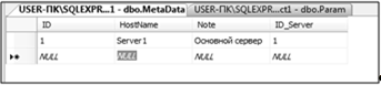 Заполним таблицы MetaData и Server несколькими значениями, результаты