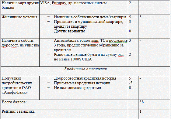 методике коммерческого банка России (ОАО «Альфа-Банк»);