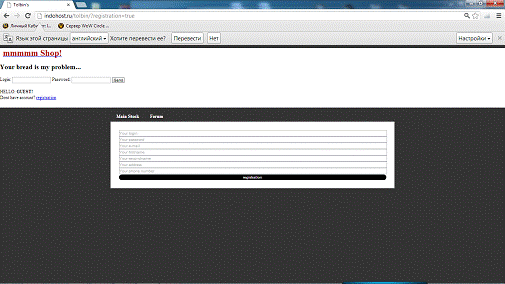 регистрацию. Также на этой странице представлен каталог товаров в виде таблицы,