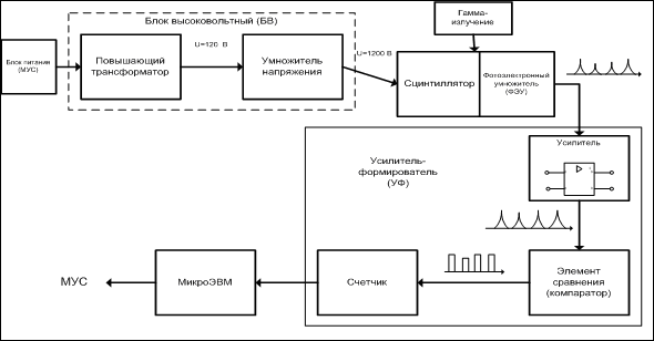 гамма каротажа выполнен на основе сцинциляционного блока. Индикатором гамма –
