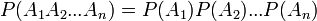 Імовірність сукупної появи декількох подій, незалежних в сукупності, дорівнює дoбутку ймовірностей даних подій