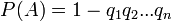 , незалежних в сукупності, дорівнює різниці між одиницею та добутком ймовірностей протилежних подій