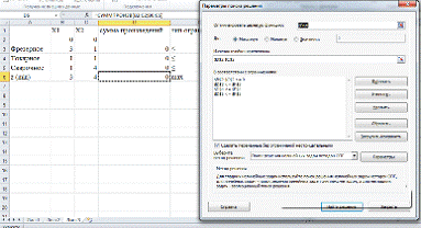 математическую модель и заносится в рабочий лист MS Excel.