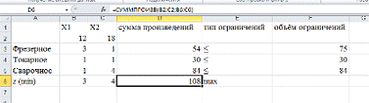 6. Решение задачи в EXCEL