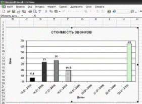 диаграммы - гистограмма. Выделяем столбцы Дата и Стоимость.