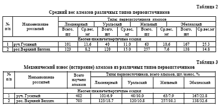 “жильному” и “эбеляхскому” типам. Средний вес алмазов уральского типа несколько