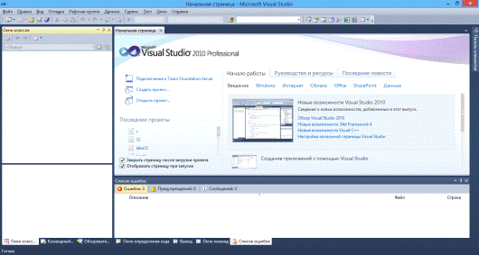 соответствующий пункт меню «Пуск». При запуске на экране появляется окно среды