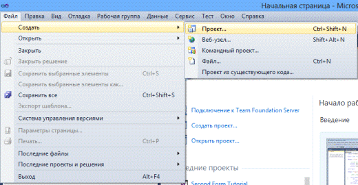 соответствующий пункт меню среды разработки (Файл →Создать→Проект)