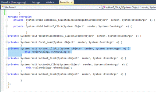 вписываем следующий код:>colorDialog1->ShowDialog();