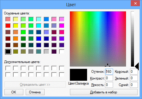 нажатии на кнопку перед нами появится диалоговое окно цветовой палитры