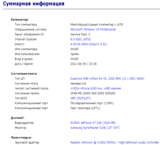 комп'ютера (кількість пам'яті, її використання, типи дисків і т.д.), а також