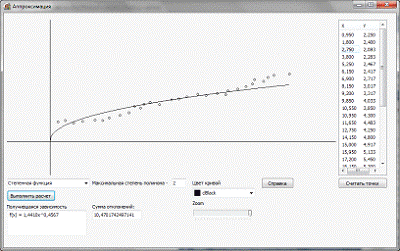 выведенная аппроксимирующая функция, в поле «Сумма отклонений», будет выведенная