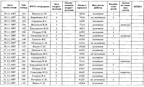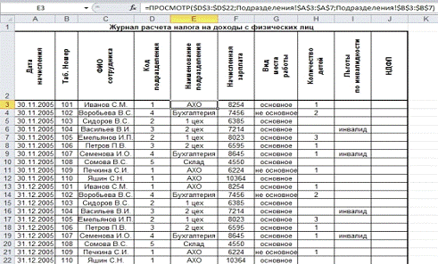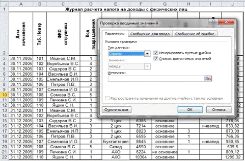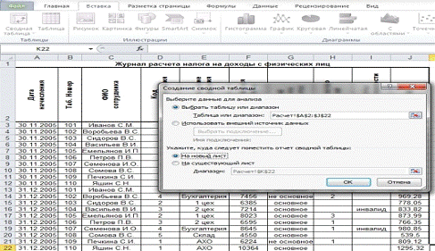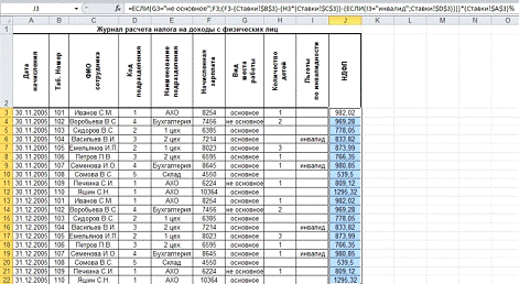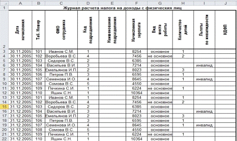 таблицы «Журнал расчета налога на доходы с физических лиц», находящейся на