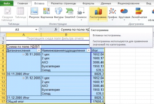 представить графически, построим по данным сводной таблицы гистограмму (Рис.
