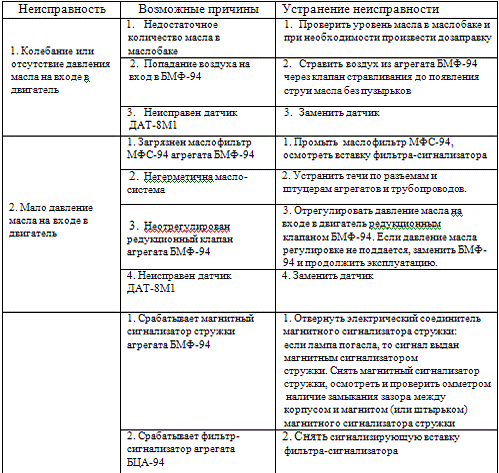 маслосистемы давление масла, температуру масла, уровень масла в баке Если Рм =