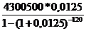 (сумма кредита 4300500 рублей, срок кредитования - 10 лет, годовая процентная