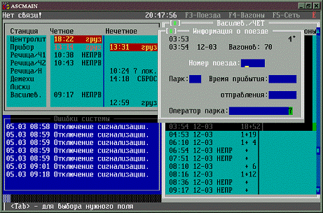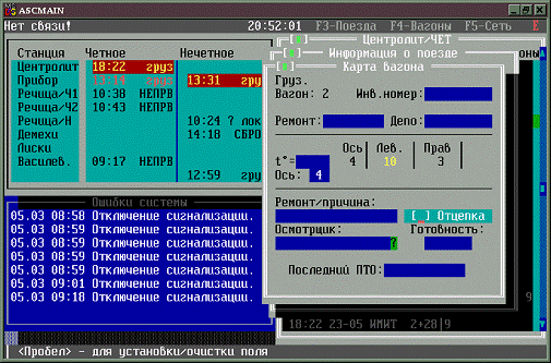 информационной централизованной сети контроля подвижного состава на базе