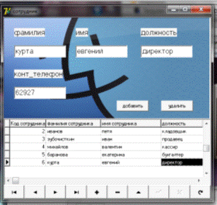 сотруднике характеризуется вводом фамилии, имени, должности и контактного