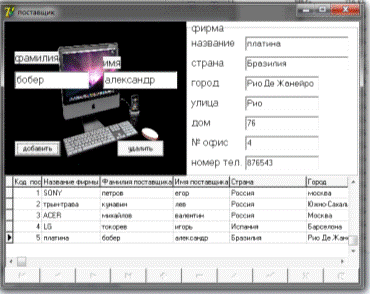 Ф.И.О. поставщика, а так же вводом адреса, названия фирмы и номером телефона