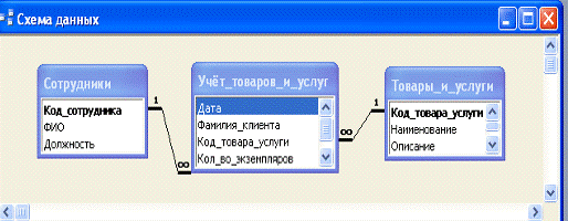 Учёт_товаров_и_услуг, Товары_и_услуги, Сотрудники');