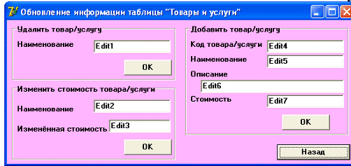 TObject);.Close;.SQL.Clear;.SQL.add('update Товары_и_услуги');.SQL.Add('set