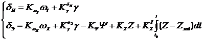 регулятора закона управления, удовлетворяющих заданным динамическим и