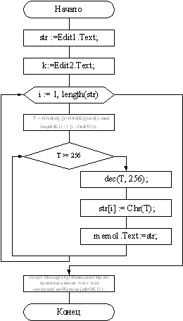ввода ключаi:= 1 to length(str) do:= (Ord (str[i])+(Ord (K[(pred(i) mod