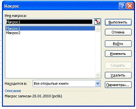 Сервис/Макрос/Макросы. Выбрать в открывшемся окне нужный макрос и нажать на