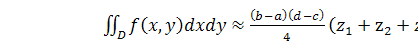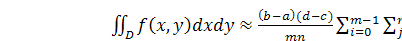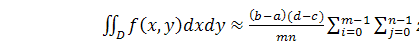 do[i,j]:=f(x[i],y[j]);:=s+z[i,j];;;:=((b-a)*(d-c))/(m*n)*s;('k=',