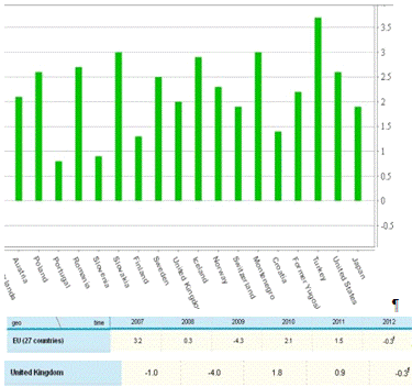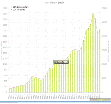 Отже, у 2008 році обсяг ВВП в Англії значно зменшився, можливо це відбулось