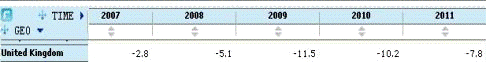 Дефіцит державного бюджету складає 7,8% від ВВП у 2011 році. Цей