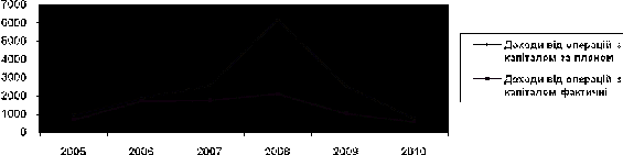 доходів від операцій з капіталом у державному бюджеті України впродовж 2005