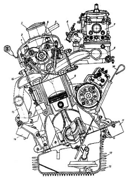 агрегата смонтирован не над карбюратором, а у правого колесного кожуха.
