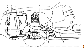 Рис. 18 - 1 - силовой агрегат и капот при почти