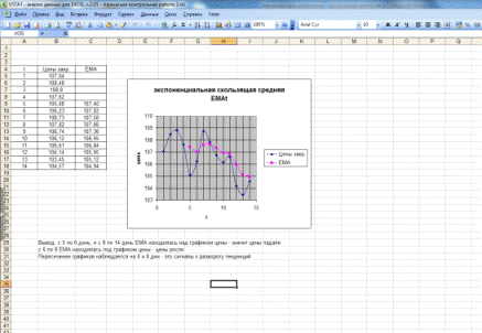 минимальная и закрытия) за 14 дней. (см. таблица) Интервал сглаживания принять