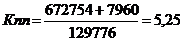 Коэффициент промежуточного покрытия на начало месяца 5,245 и на конец