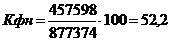 Коэффициент финансовой независимости на начало месяца 52,2% и на конец