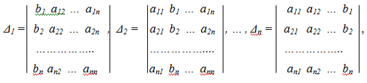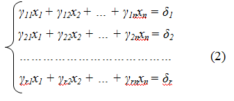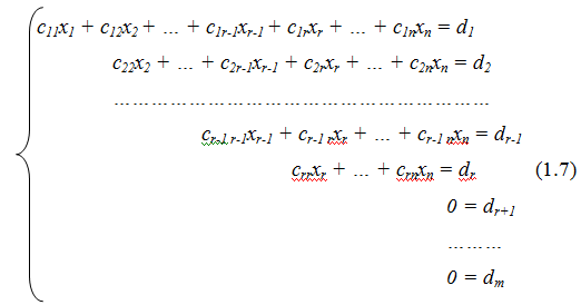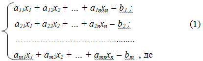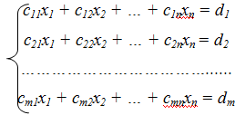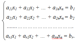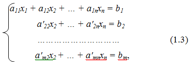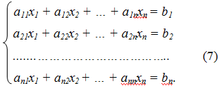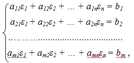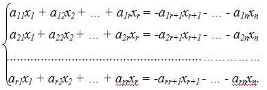 вільні члени системи (1), аij, bi є R,, x2 , … , xn - невідомі.