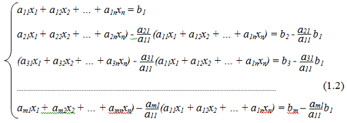 іншу систему рівнянь з тими самими невідомими x1, x2, …, xn :