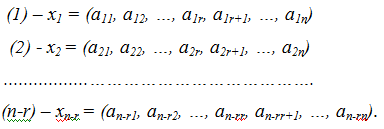 А називається кількість ненульових рядків еквівалентної ступінчастої матриці.